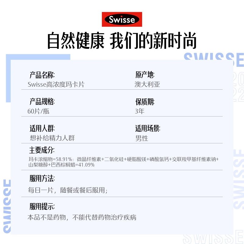 【自营】Swisse斯维诗男性滋补高浓度玛卡片60片释放男性玛咖活力