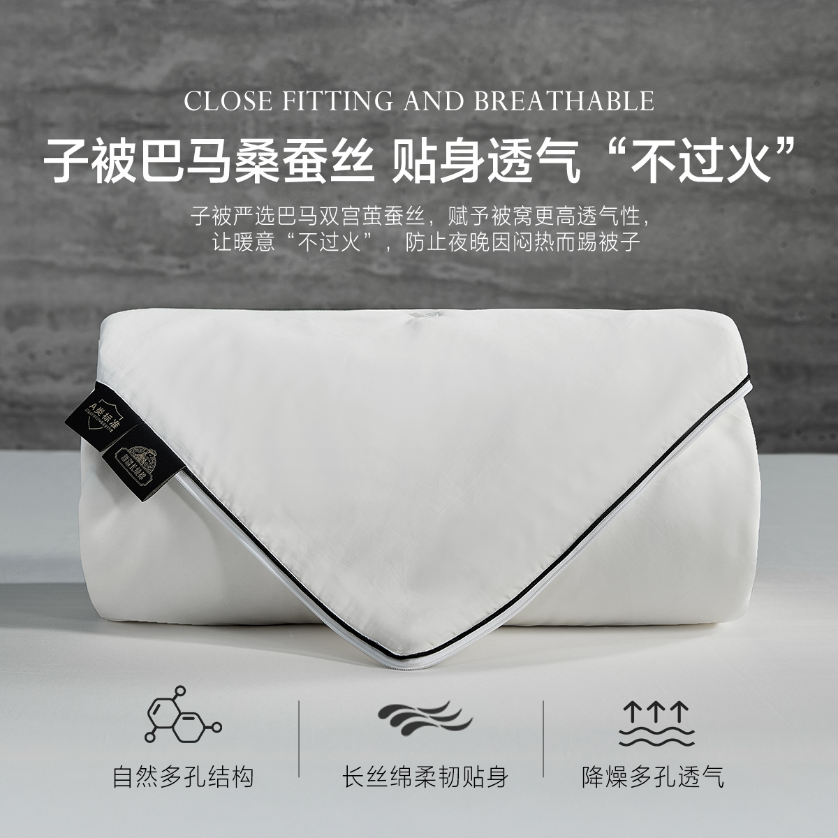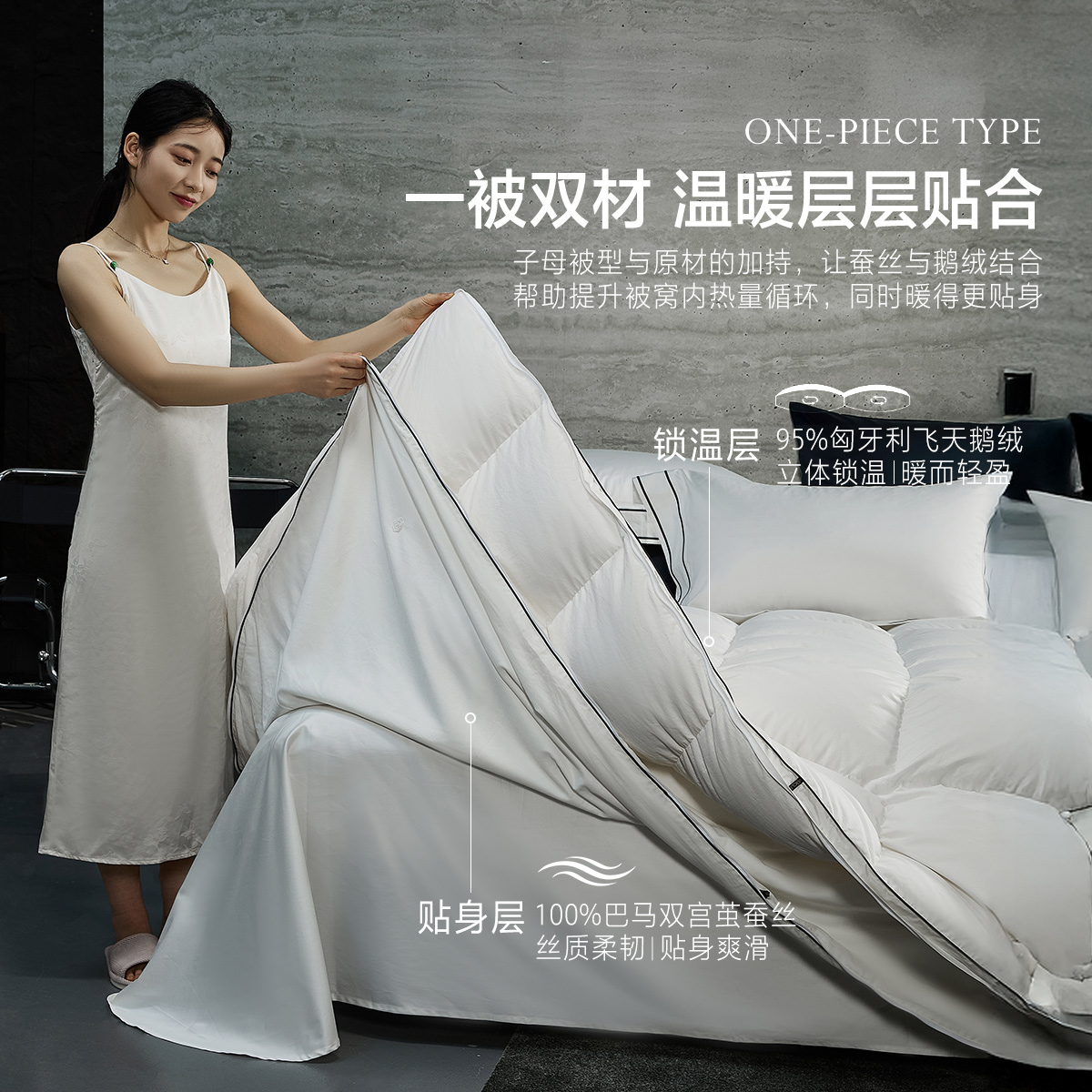 水星家纺被芯95%匈牙利进口鹅绒桑蚕丝二合一被120S全棉四季夏被