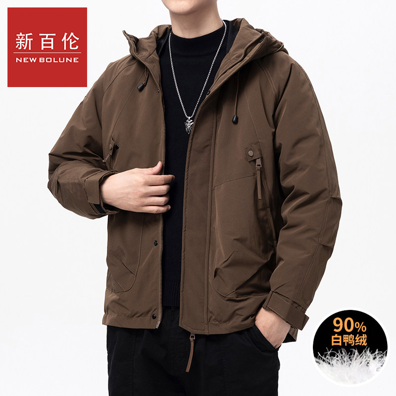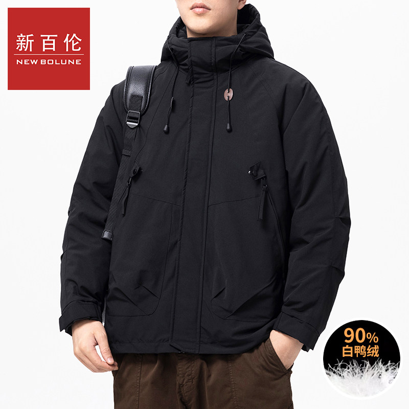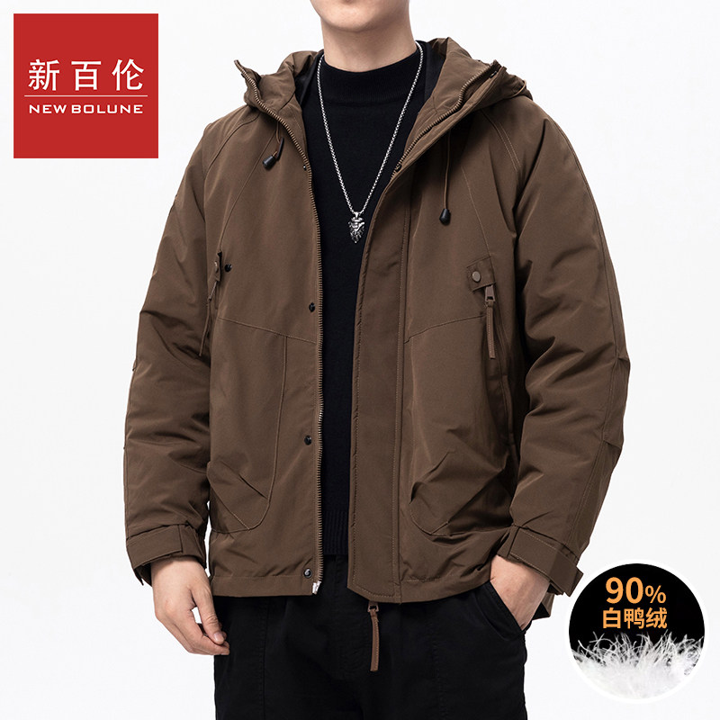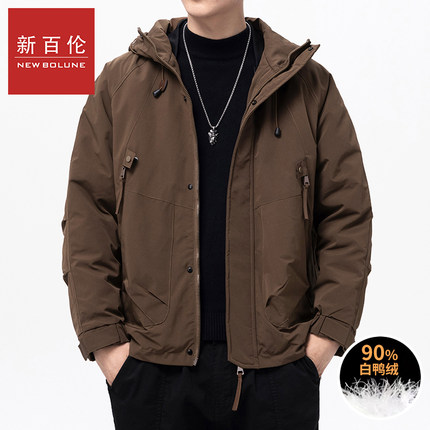 新百伦新国标90鸭绒羽绒服冬季美系复古工装可拆卸内胆羽绒男外套