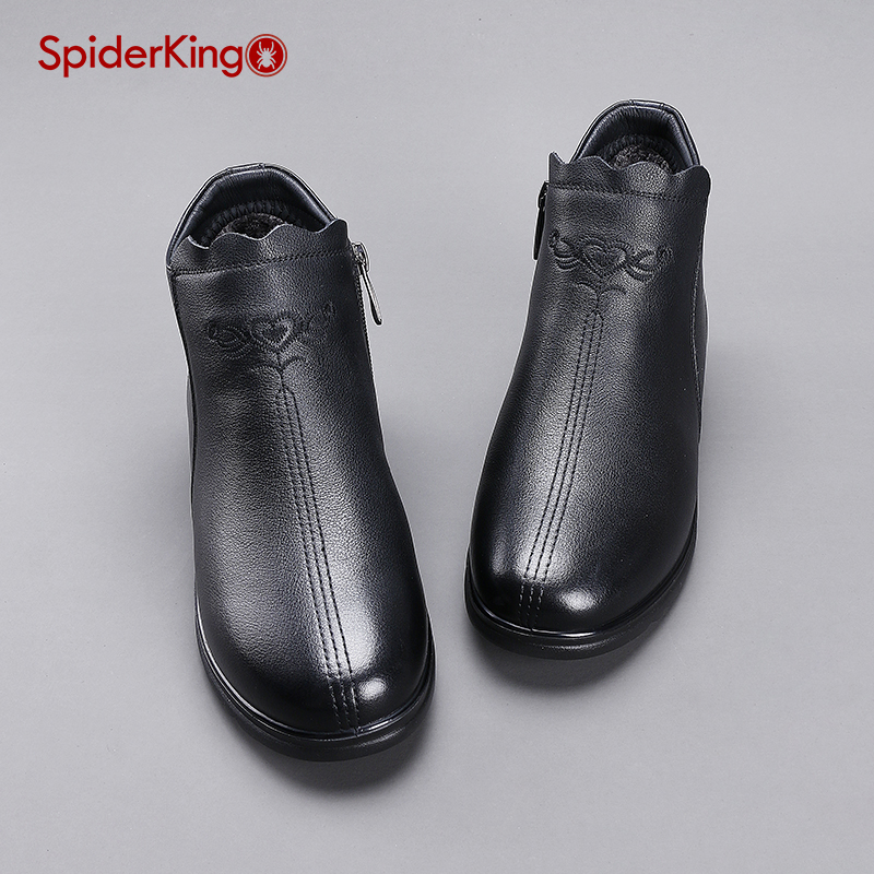蜘蛛王女鞋2024冬季门店同款真皮厚绒保暖中老年棉鞋软底妈妈鞋女