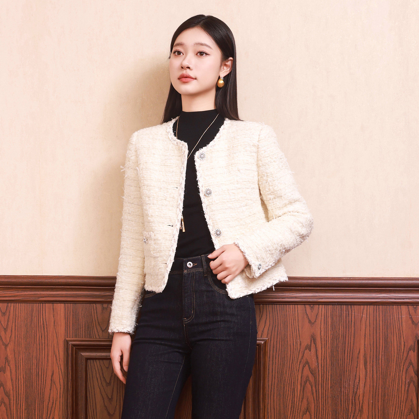 【商场同款】奕辰2025冬季新款鹅绒小香风羽绒服薄款粗花呢外套女