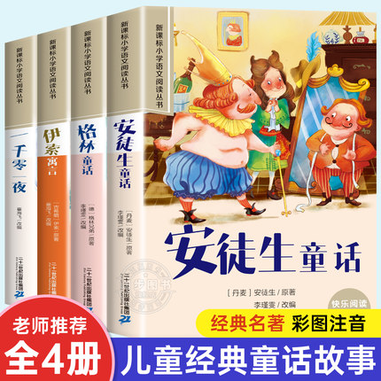 安徒生童话格林童话全集彩图注音版全4册一千零一夜伊索寓言儿童故事书小学生一二年级阅读课外书必读带拼音绘本幼儿读物睡前故事