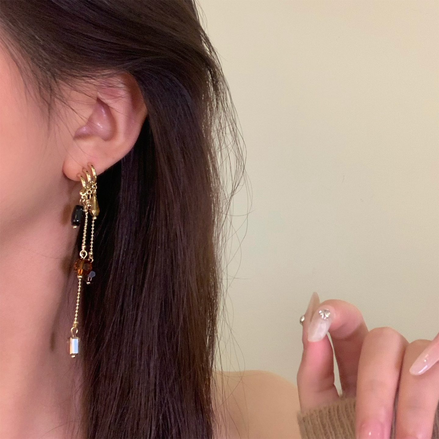 复古切面水晶流苏耳环女时尚个性百搭耳钉轻奢高级感长款秋冬耳饰