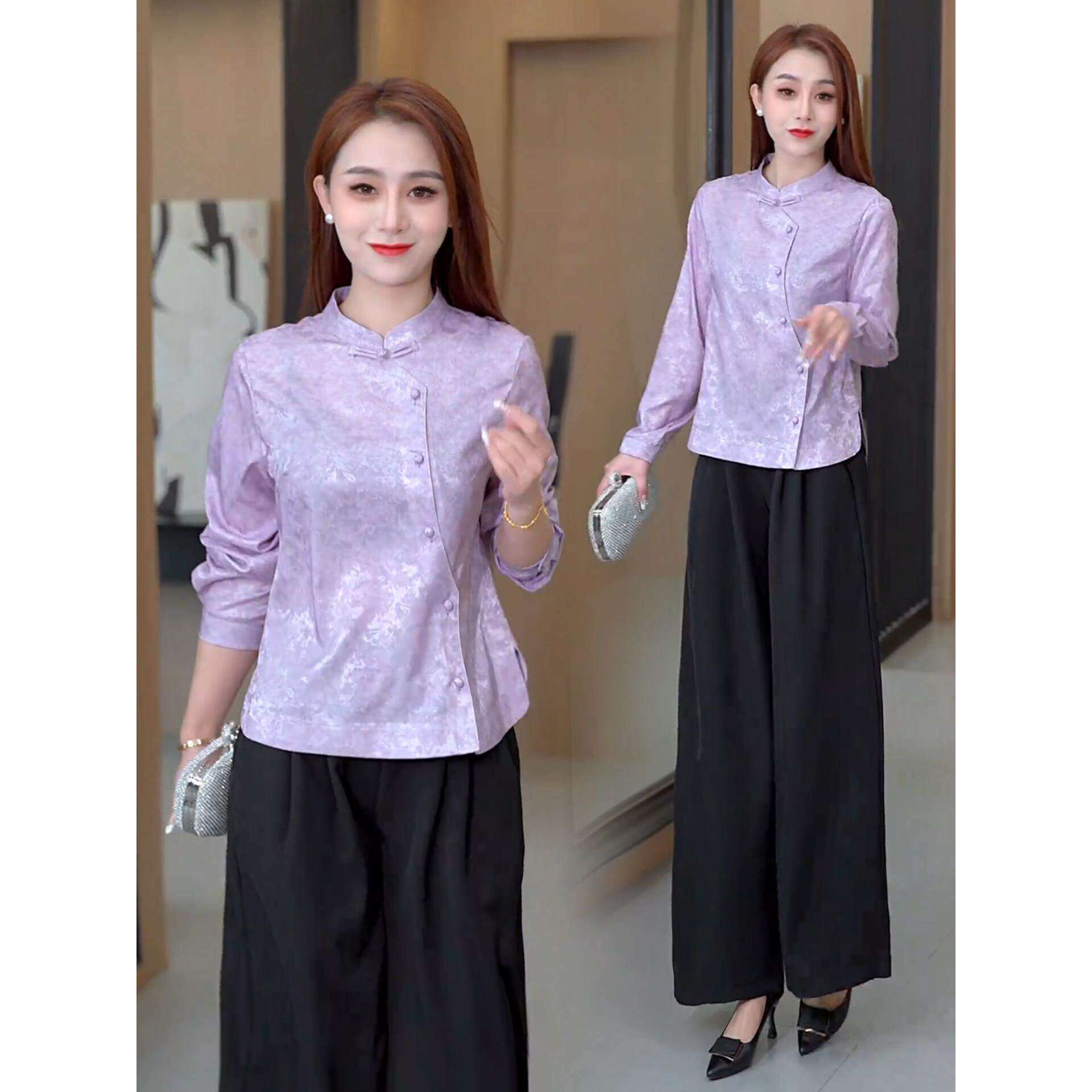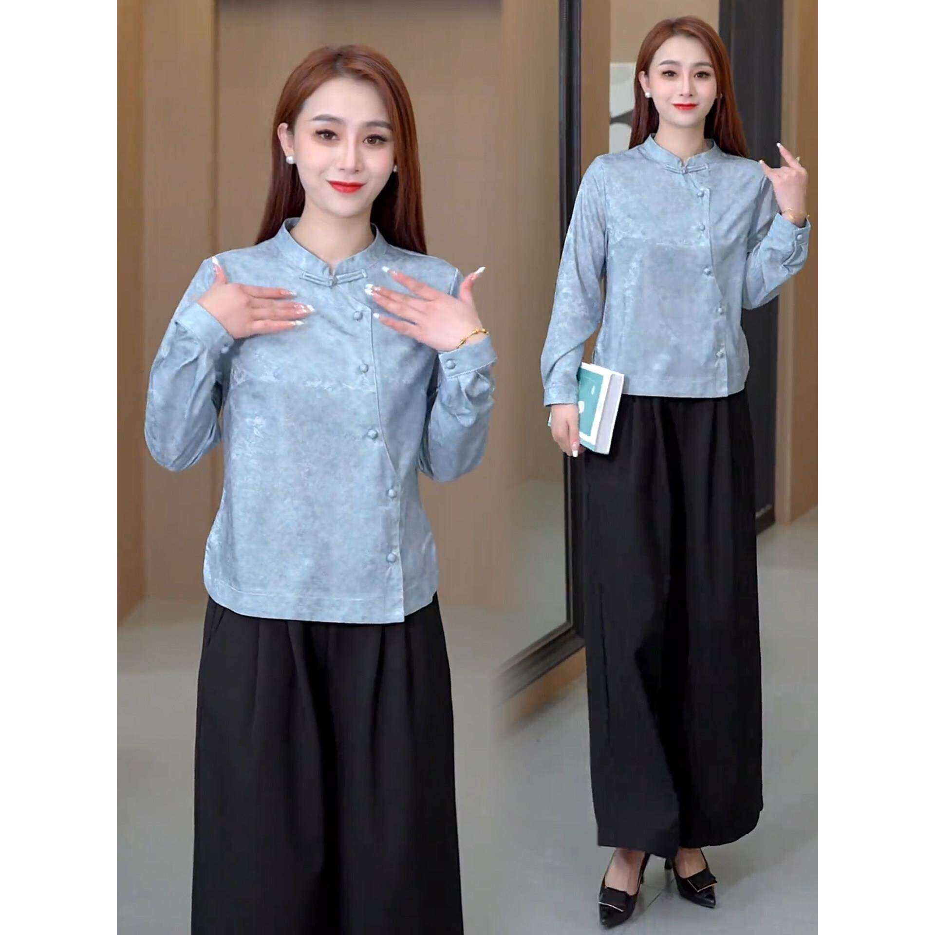 新中式立领盘扣提花春季衬衫女