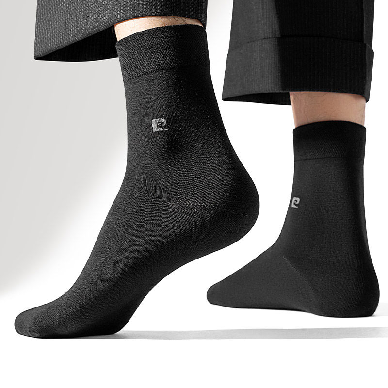 皮尔卡丹黑色袜子男款纯棉防臭春夏季薄短袜中筒袜秋冬厚款长筒袜