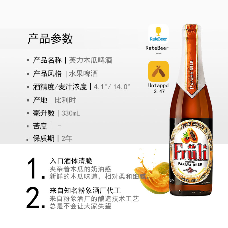 单瓶!比利时进口芙力草莓荔枝木瓜味水果小麦精酿女士啤酒330ml