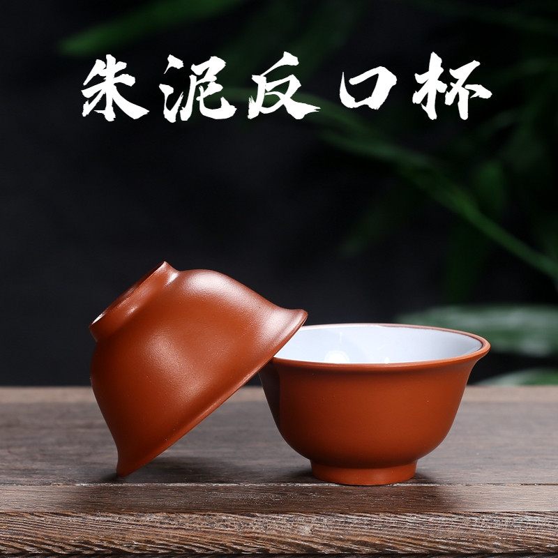 宜兴紫砂茶具紫砂品茗杯小茶杯陶瓷杯子朱泥反口杯主人杯防烫单个
