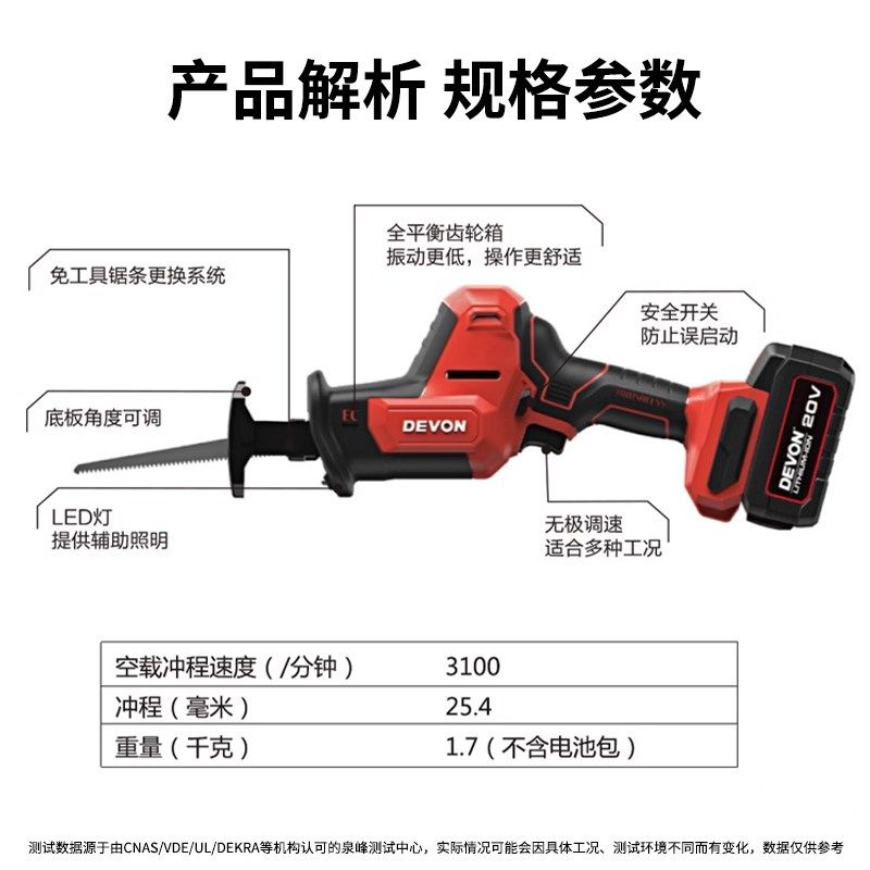 大有5830-LI无刷充电式马刀锯20V锂电往复锯小型多功能手持电动锯