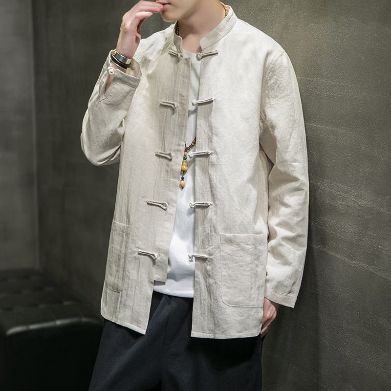 亚麻长袖衬衫外套男秋季中国风男装衬衣中式立领男士棉麻唐装上衣