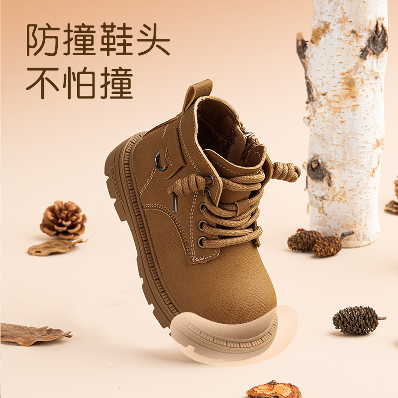 英贝米尼马丁靴男童秋冬加绒保暖儿童靴子宝宝鞋子英伦风女童短靴