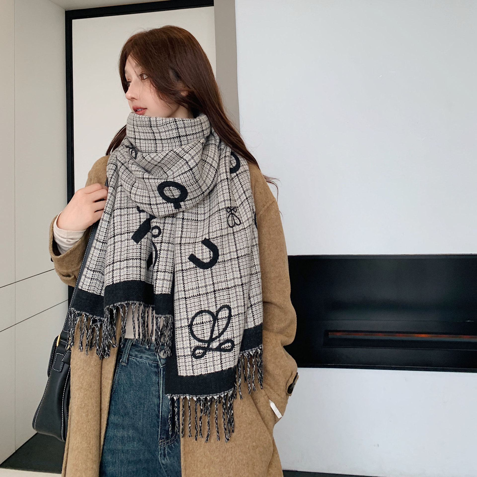 RD字母流苏围巾女冬季2025新款时尚百搭秋冬高级感围脖保暖少女韩