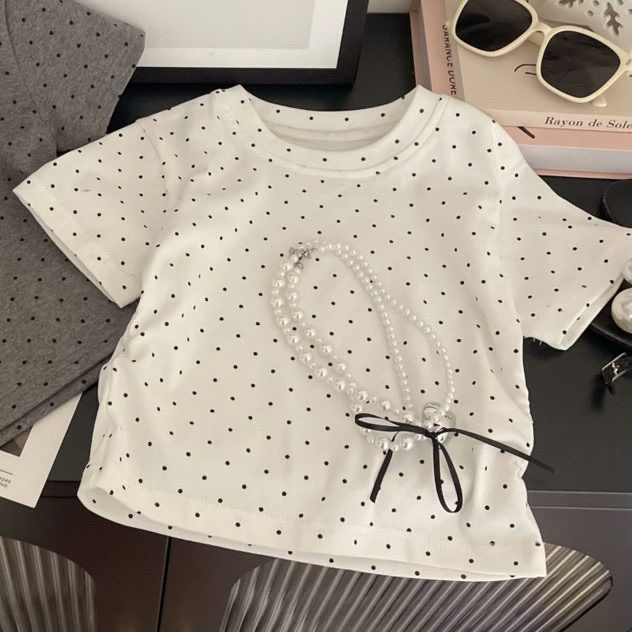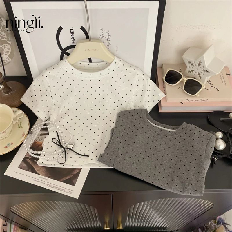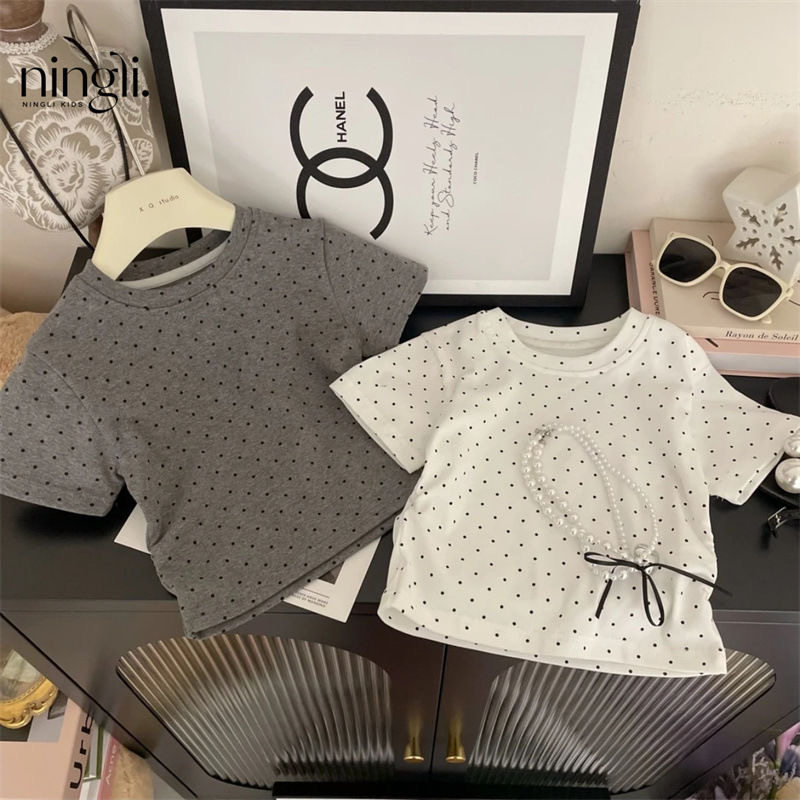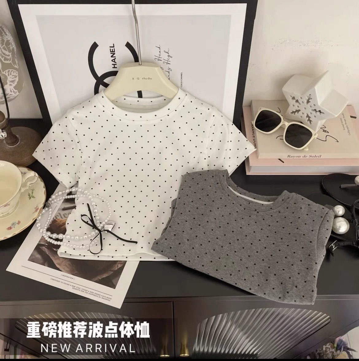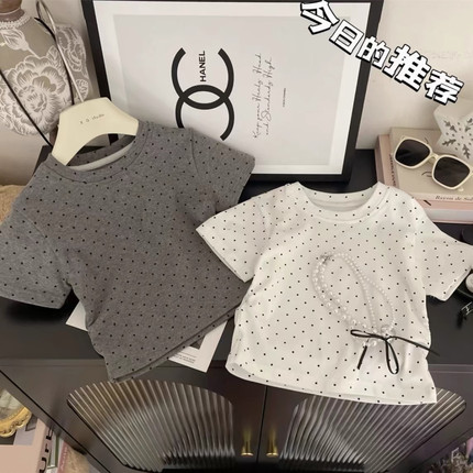 韩版女童短袖夏季2025新款洋气波点时尚T恤女宝宝圆点个性上衣潮