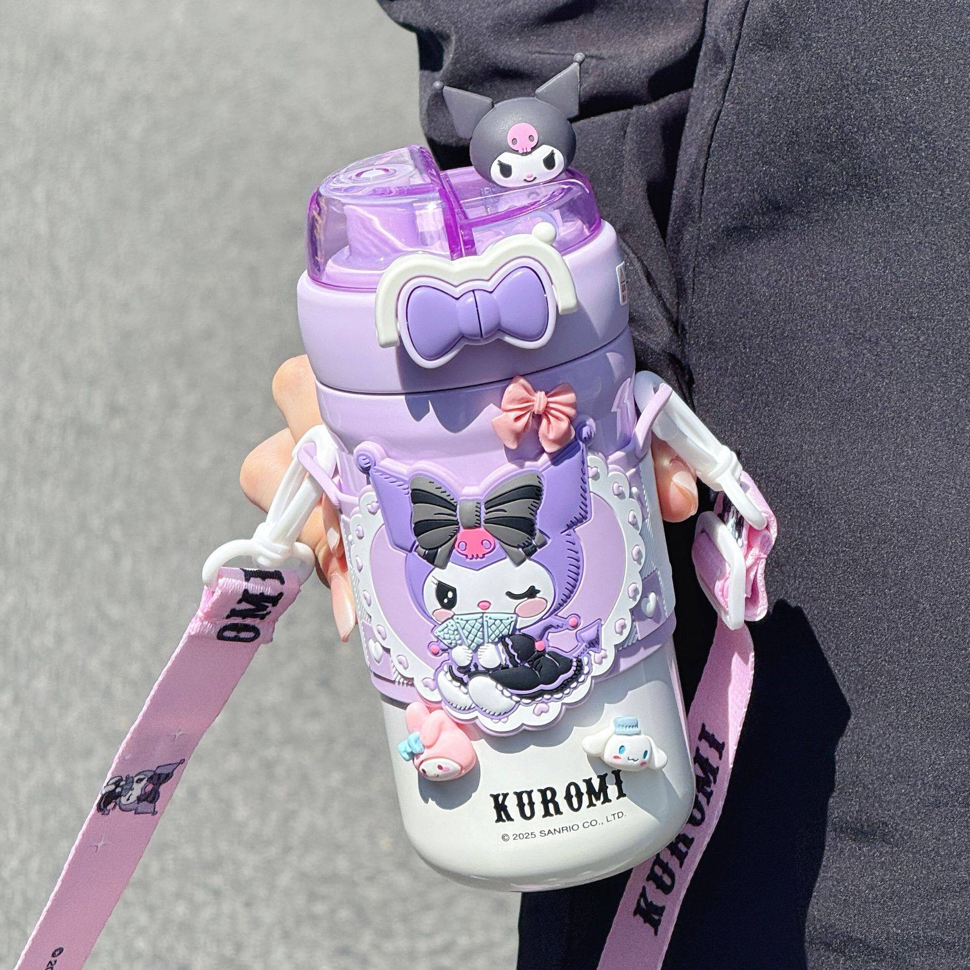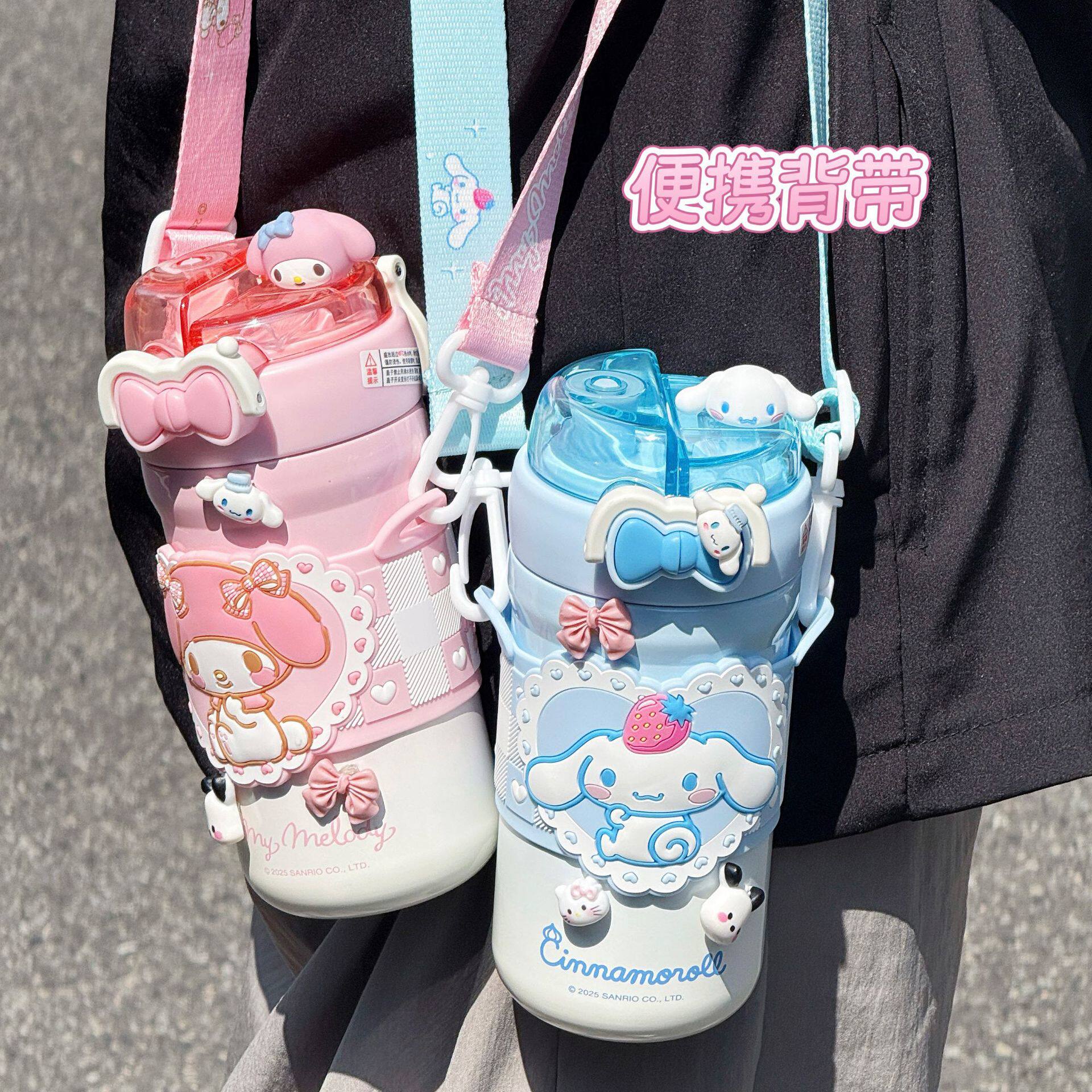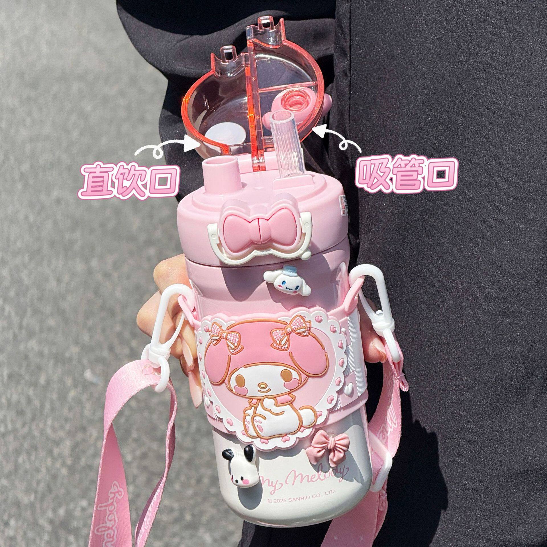 三丽鸥保温杯女生高颜值水杯小学生上学专用2025新款双饮吸管杯