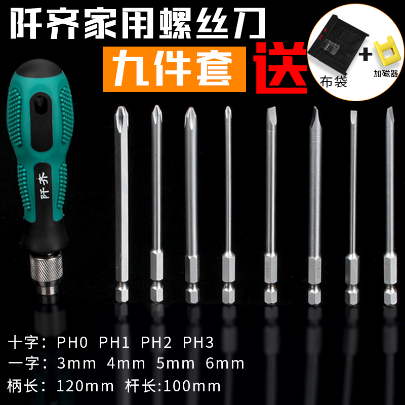 包邮阡齐家用9件多功能螺丝刀组合套装维修拆机工具加磁 十字批头