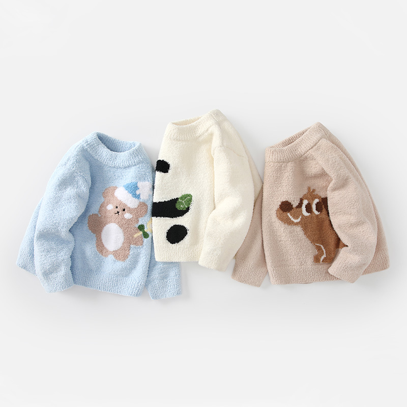 婴儿毛衣秋装男宝宝雪尼尔半边绒针织衫儿童幼儿女童加厚秋冬上衣