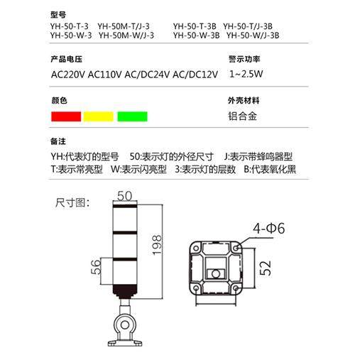 50mm 金属三色灯机床LED警示灯信号塔灯多层声光90db折叠12V24V