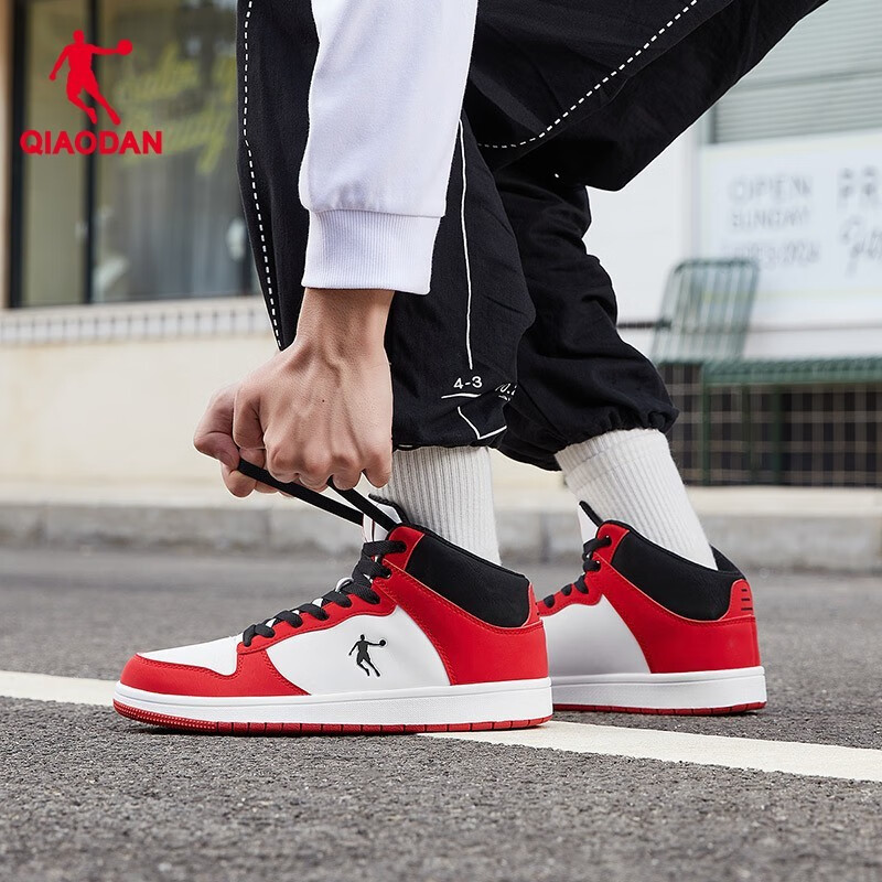乔丹男鞋红色本命年高帮板鞋冬季新款皮面运动鞋男加绒保暖休闲鞋