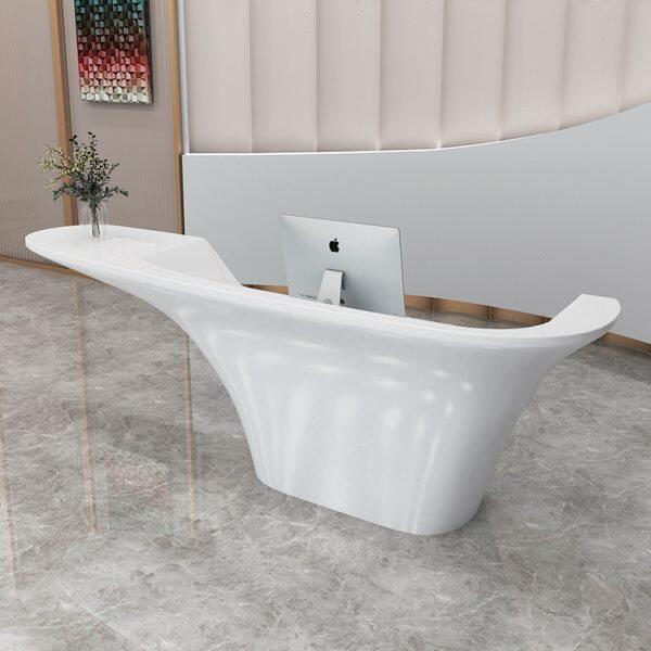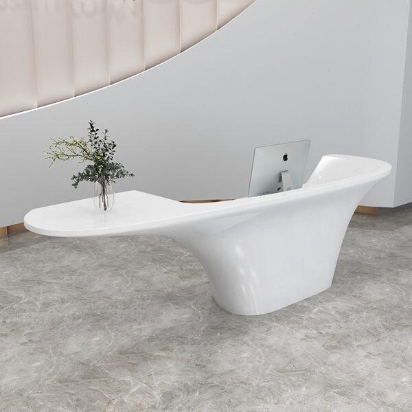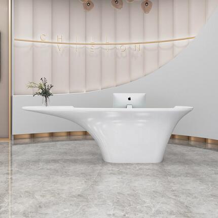 异形公司接待台玻璃钢大型吧台美容院收银台简约弧圆高端烤漆前台