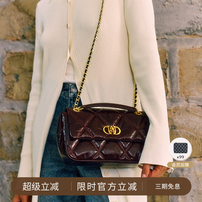 万里马油蜡皮菱格链条包包女极简风腋下包通勤百搭单肩法式斜挎包