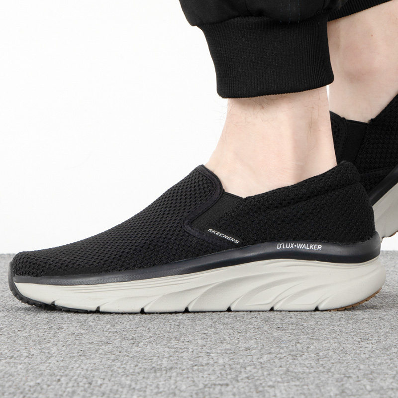 斯凯奇男鞋黑色一脚蹬休闲鞋