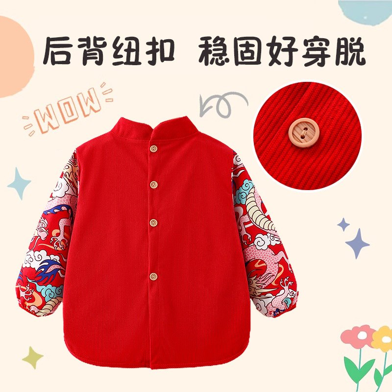 拜年宝宝罩衣过年儿童新年服反穿衣防水防脏中国风新中式春节贺岁