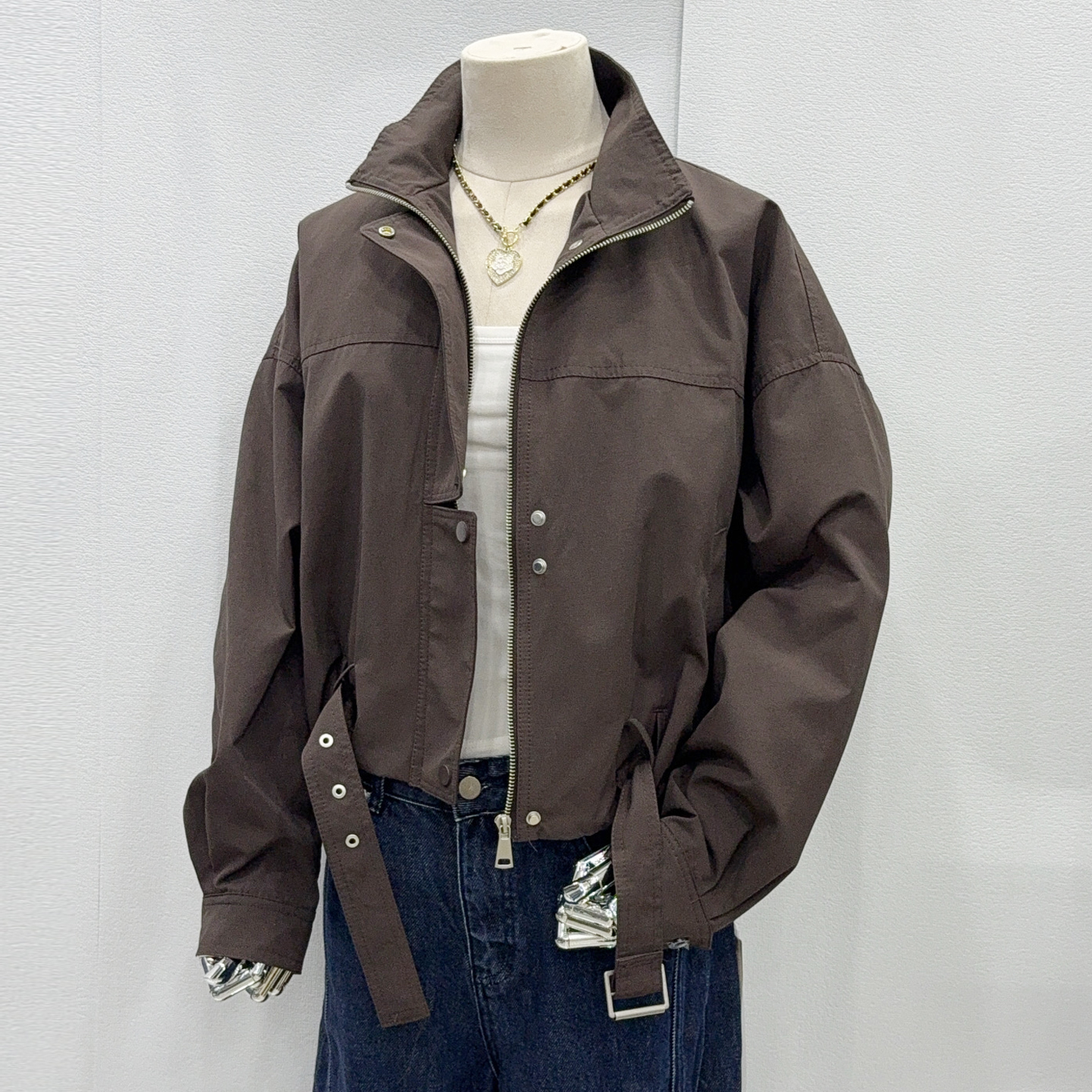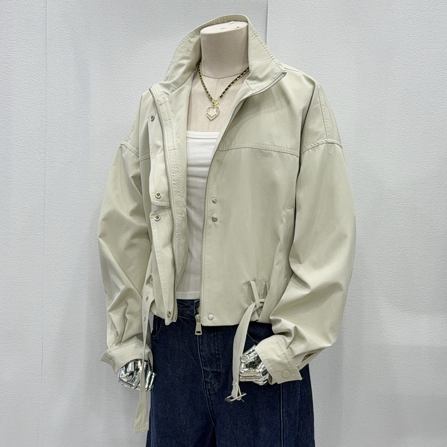 立领外套女短款秋季新韩系时尚宽松休闲百搭设计感减龄小个子夹克