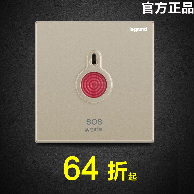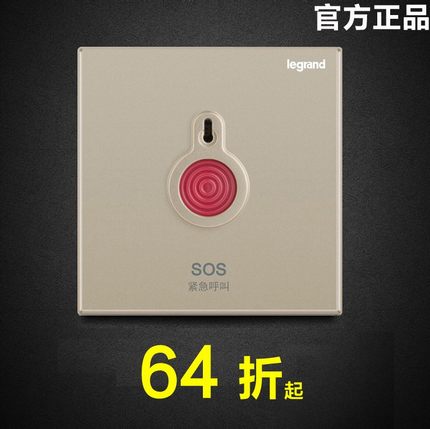 TCL罗格朗SOS床头紧急按钮呼叫开关86型手动消防报警面板家用金色