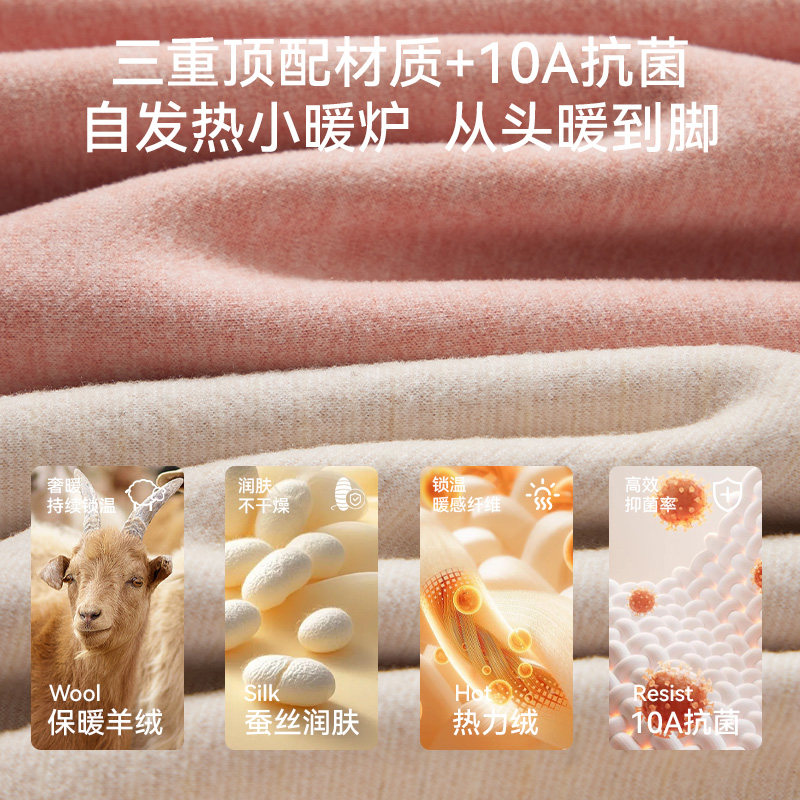 猫人保暖内衣女防寒贴片加绒加厚德绒发热无痕秋衣秋裤打底衫套装