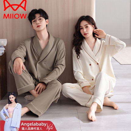 猫人情侣睡衣春秋款纯棉长袖2025新款莱卡棉男士可外穿家居服套装