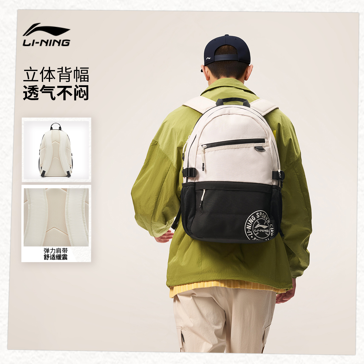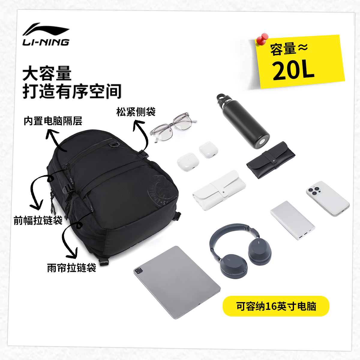 李宁双肩包男女2025新款通勤旅游轻便防泼水背包学生书包运动包