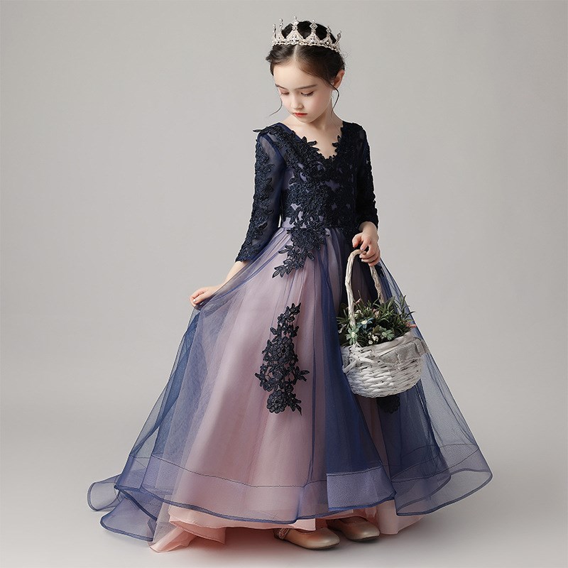 胖妹妹mm连衣裙女童中大童洋气蓬蓬拖尾公主裙主持走秀钢琴演出服