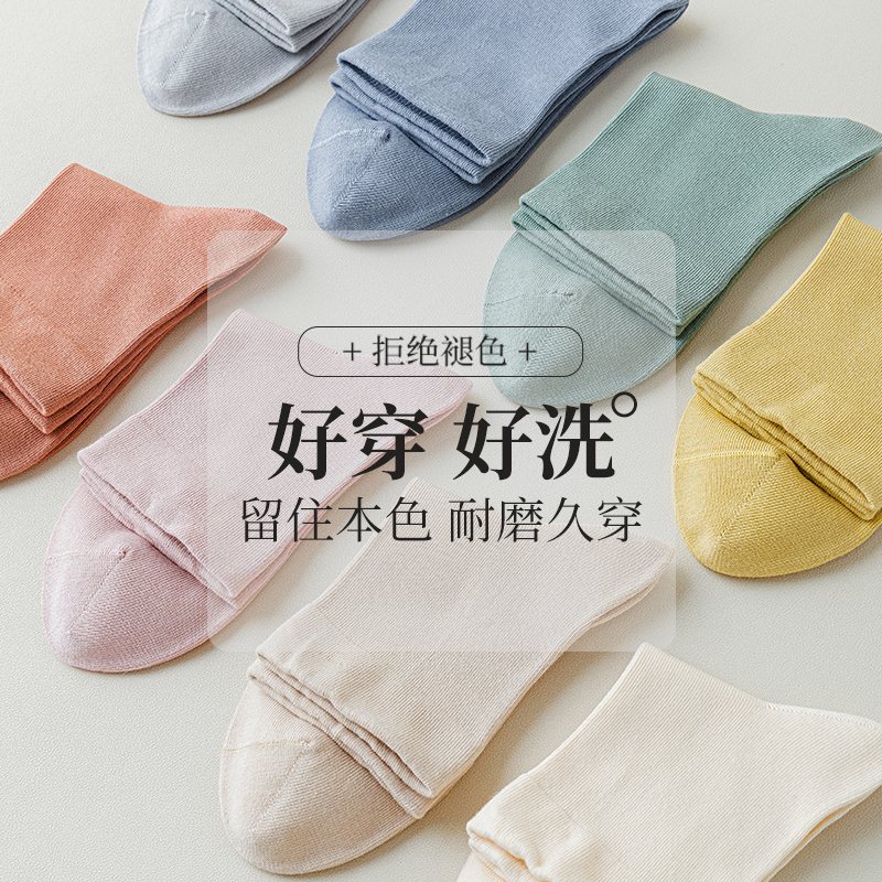 袜子女纯棉抗菌防臭无骨中短筒袜