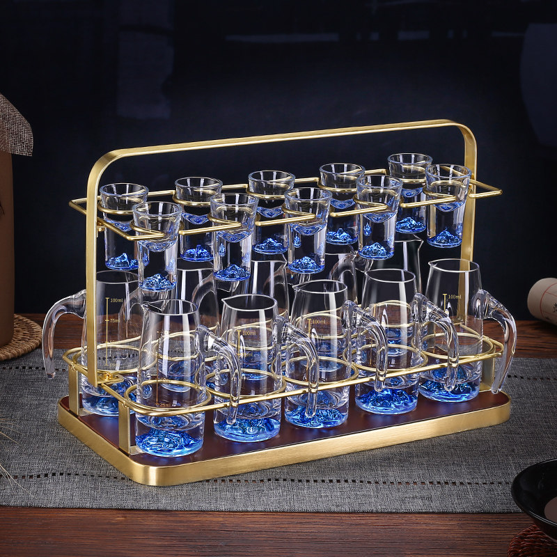 轻奢白酒杯套装家用高档蓝山分酒器小号子弹酒杯带刻度一口杯酒具