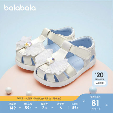 巴拉巴拉童鞋宝宝学步鞋女童凉鞋防滑婴儿鞋秋季平底鞋蝴蝶结时髦