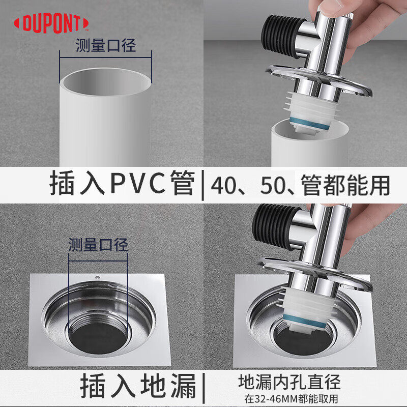 杜邦500强洗衣机地漏三通下水地漏接头下水三通两用防臭排水管