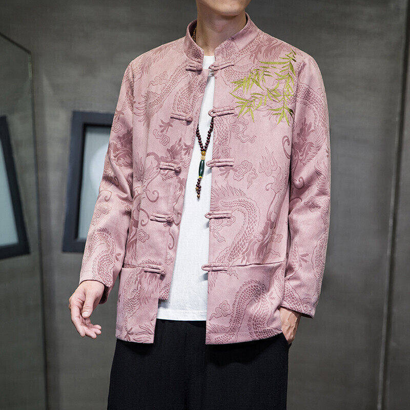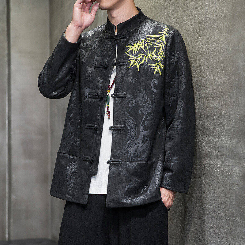 2026新款春季中国风男装鹿皮绒汉服刺绣夹克外套薄款中式立领开衫