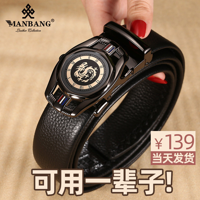 男士皮带真皮头层纯牛皮商务自动扣腰带潮2023新款年轻人高档裤带