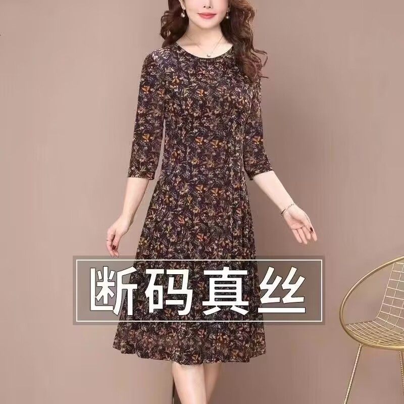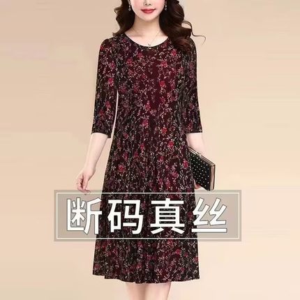 香云纱重磅真丝连衣裙女夏季2023新款宽松大码中老年妈妈桑蚕丝裙