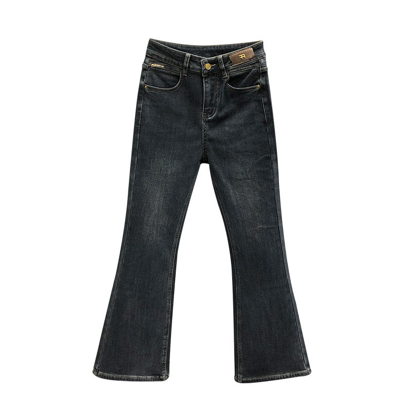 清仓价高腰加绒喇叭牛仔裤女2024秋冬时尚洋气显瘦加厚保暖微喇裤