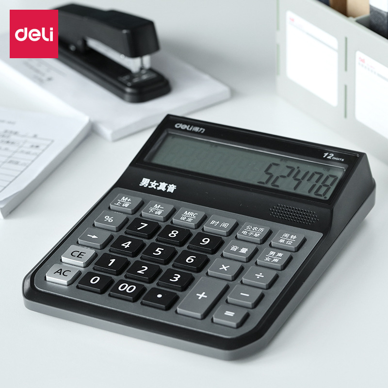 得力1555办公计算器财务会计1556语音计算机12位大屏多功能
