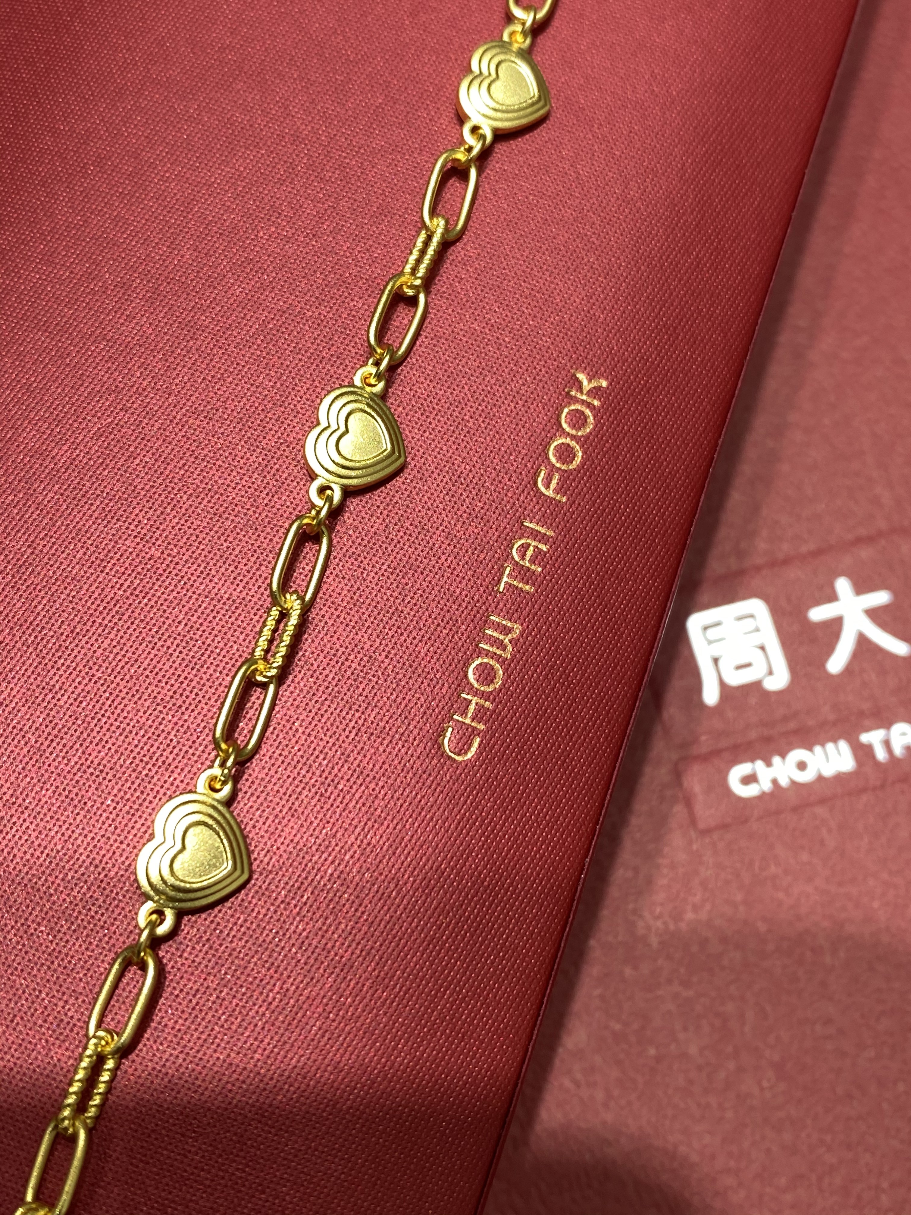 周大福代购 足金 流金岁月爱心黄金手链 专柜正品 计价 F232194