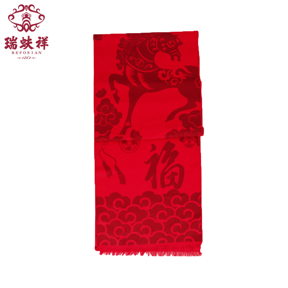 瑞蚨祥桑蚕真丝拉绒红围巾马年本命生肖红色长巾新年年会围脖冬季