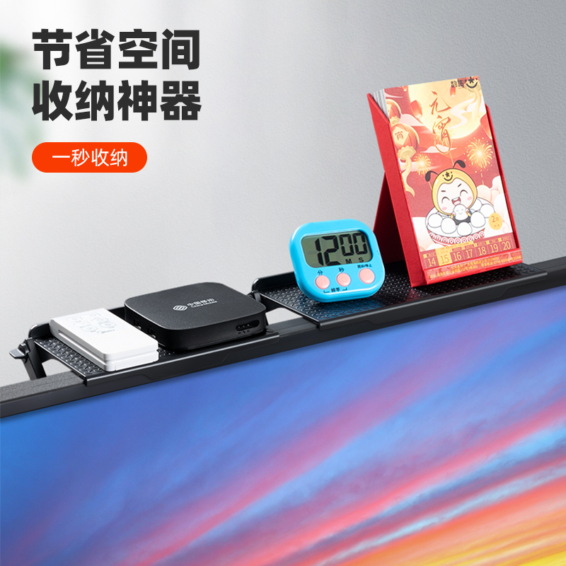 省空间电视上机顶盒置物架显示器顶部免打孔路由器收纳盒托架支架