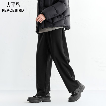 太平鸟男装休闲裤25冬季新款宽松直筒黑色运动卫裤抽绳质感长裤
