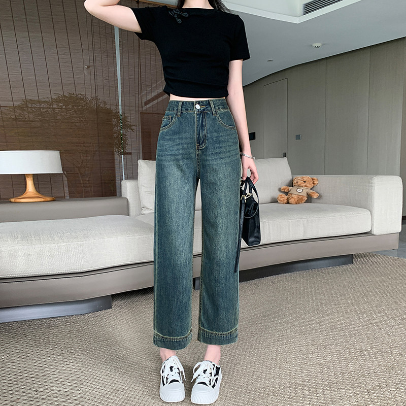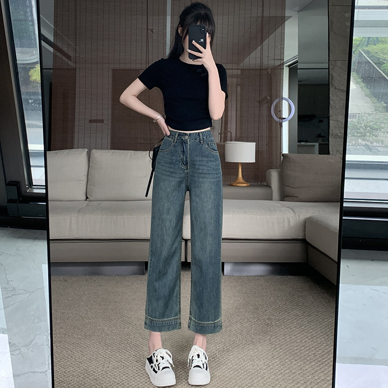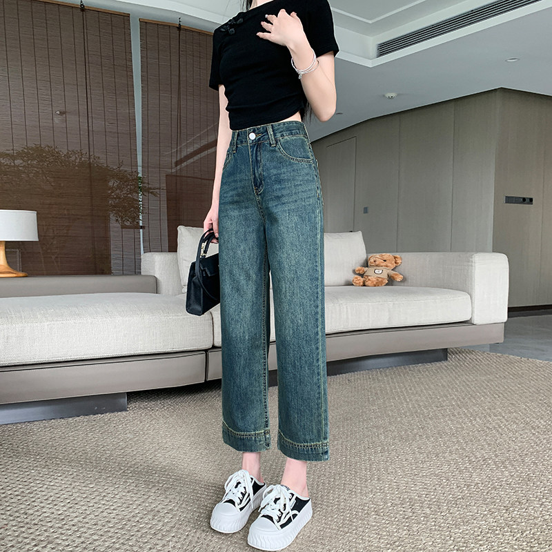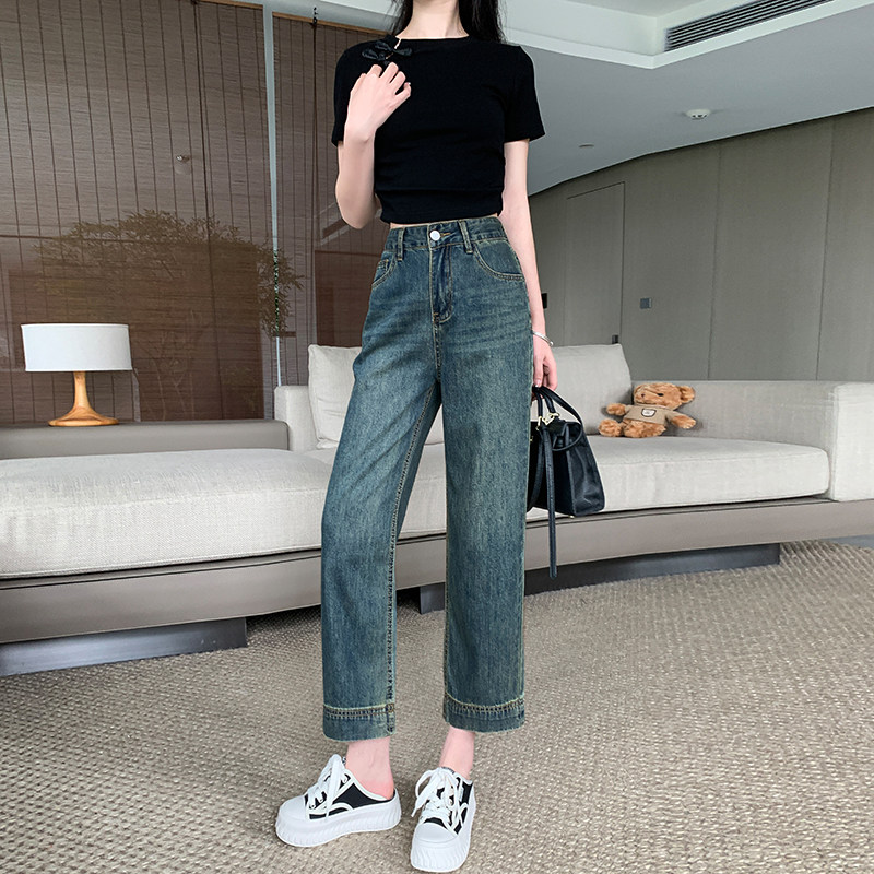145七分小个子牛仔裤女夏季新款韩版复古高腰九分窄版阔腿裤子xxs