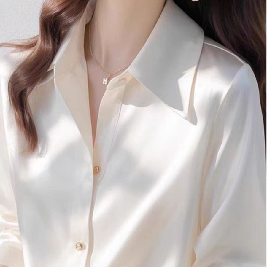 白色缎面衬衫2025早春新款宽松职业衬衫女上衣轻奢高级感别致小衫