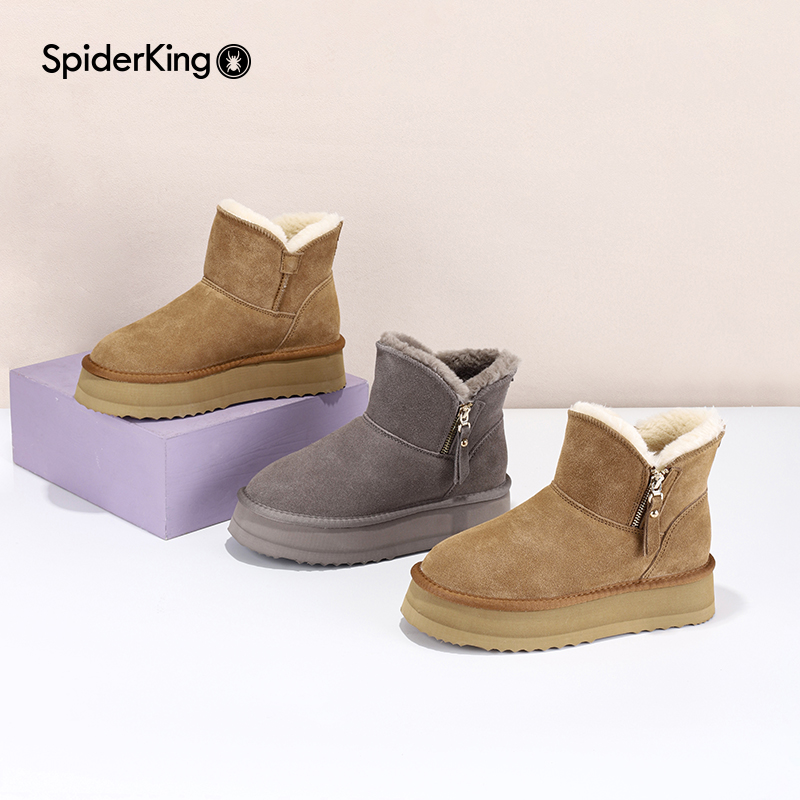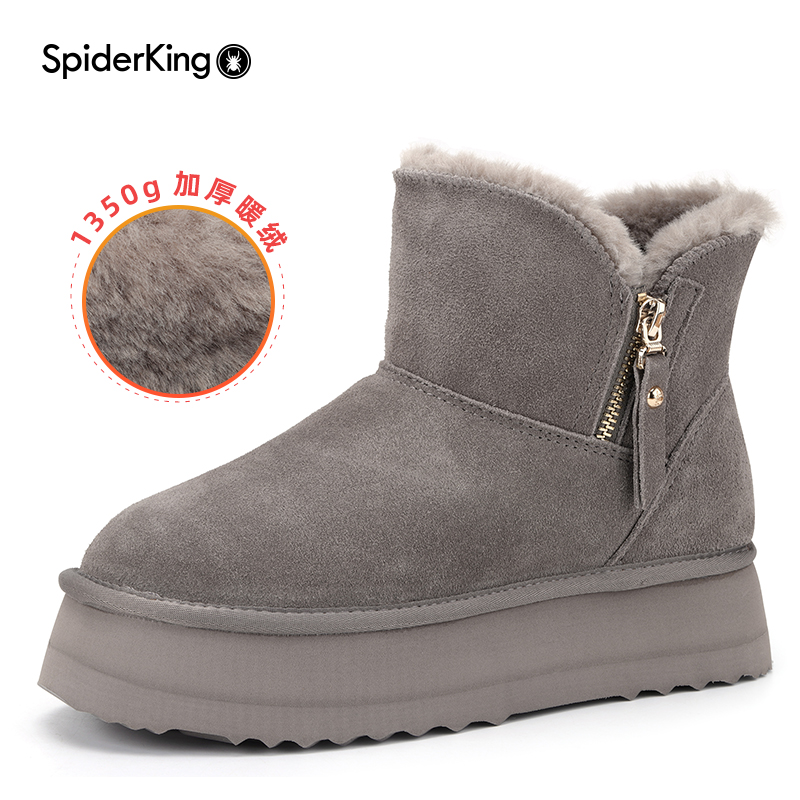 蜘蛛王加绒厚底雪地靴女款2025新款冬季女鞋东北大棉鞋户外短筒靴
