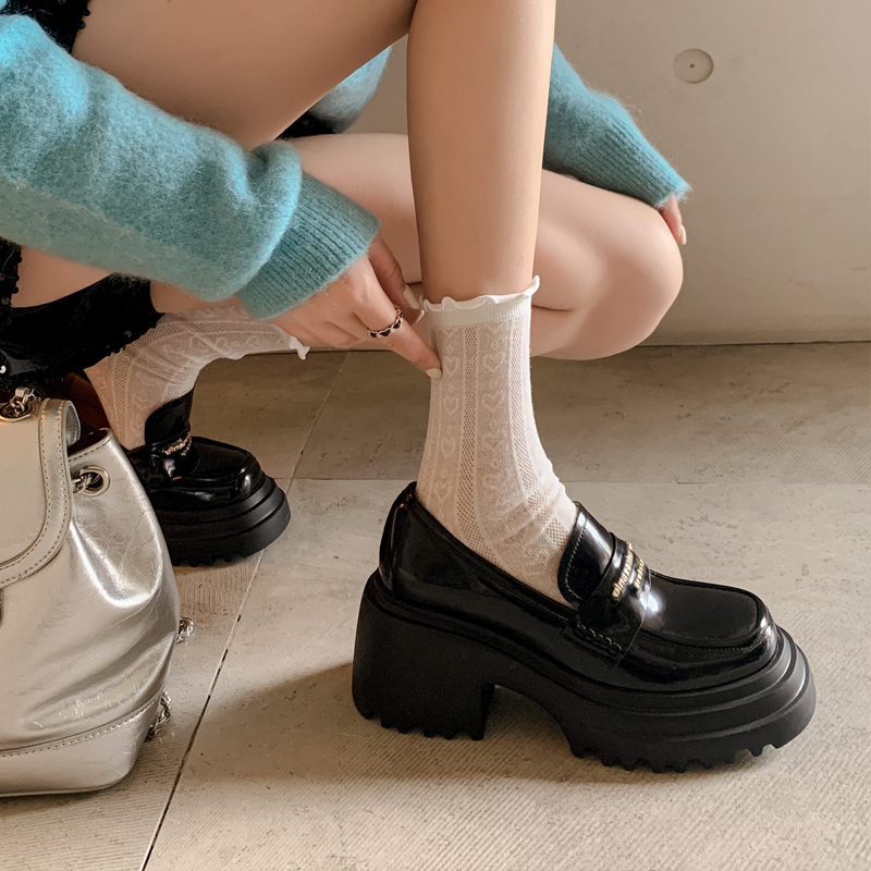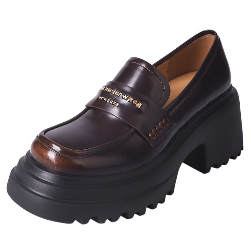 厚底乐福鞋女2025年春季新款英伦风小皮鞋真皮粗跟增高一脚蹬单鞋