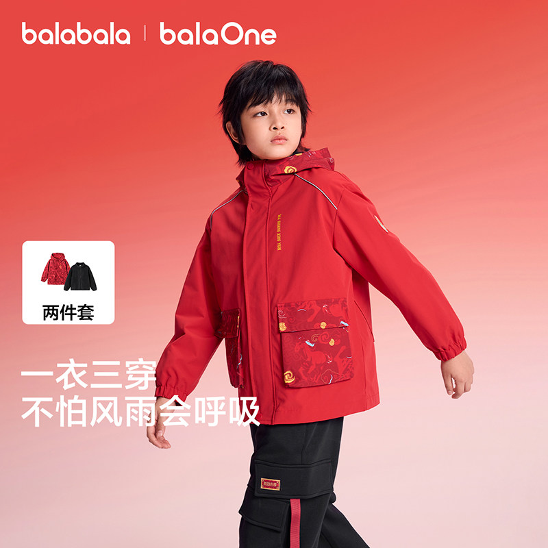 【balaOne】巴拉巴拉童装儿童外套男童2025新款春装防泼水两件套