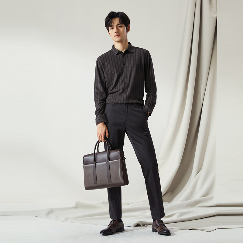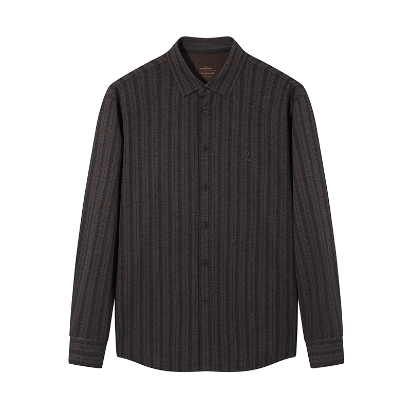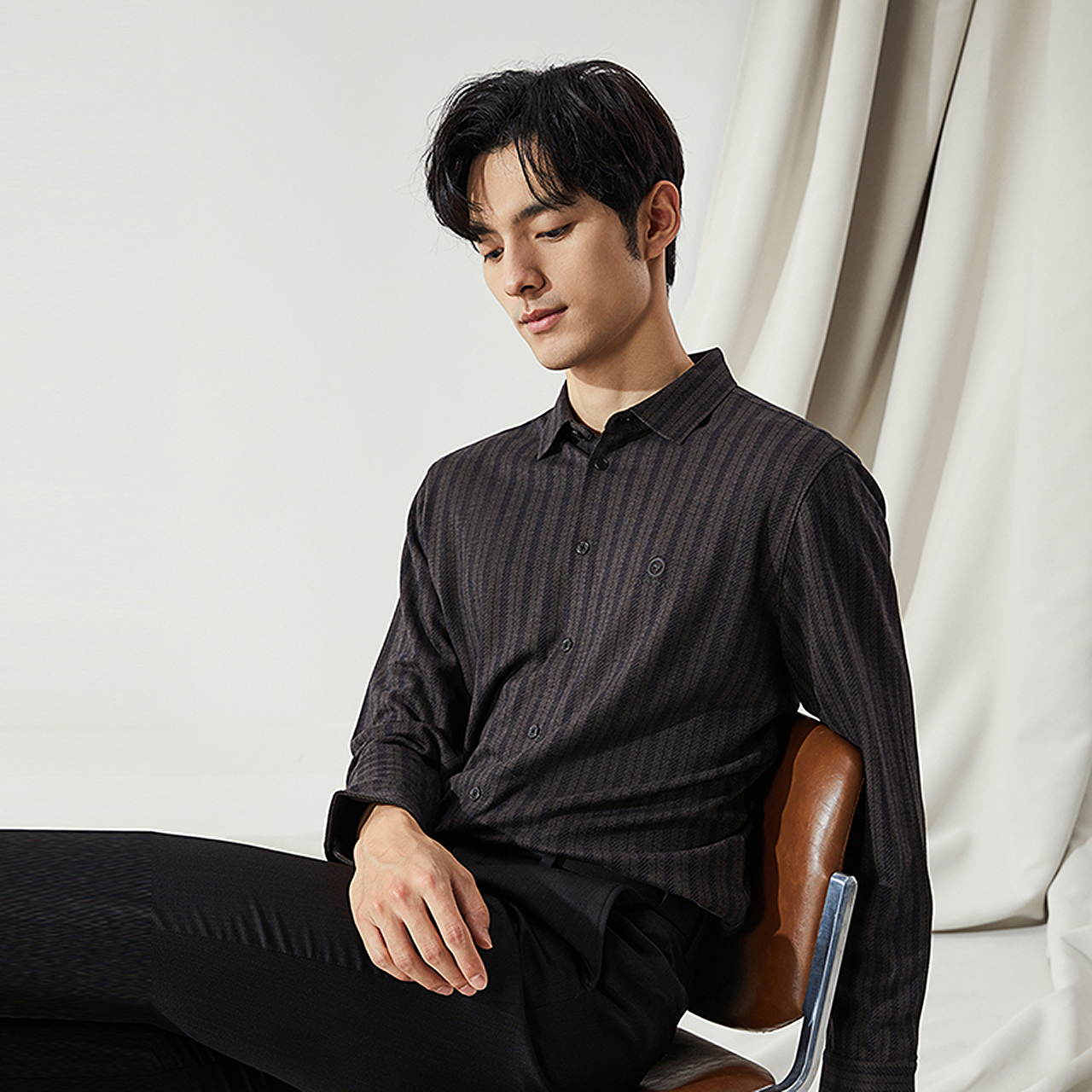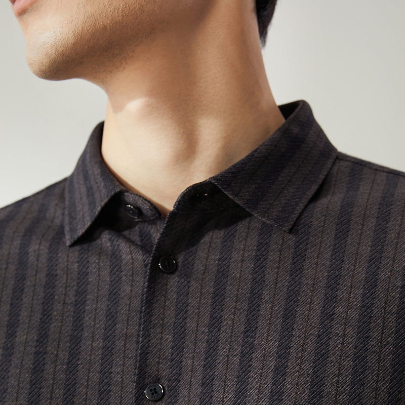 【高端系列】柒牌长袖衬衫男士秋冬新款含羊毛条纹提花休闲衬衣